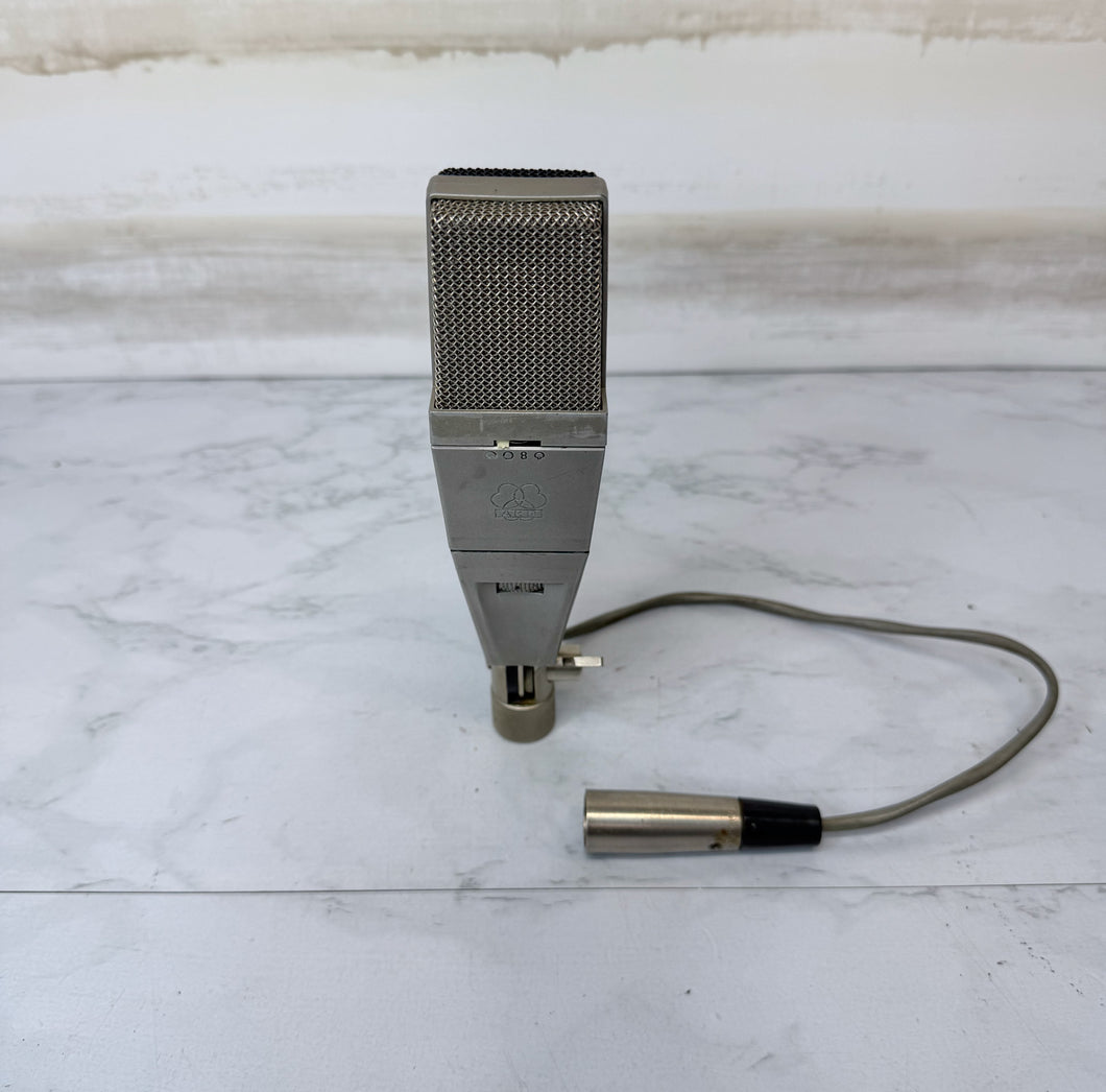 AKG C414 large diaphragm condenser microphone.  Classic and versatile mic, suitable for recording a wide variety of sources, like vocals, acoustic instruments, overheads, room mic, etc.  Recently tested and in excellent working order.