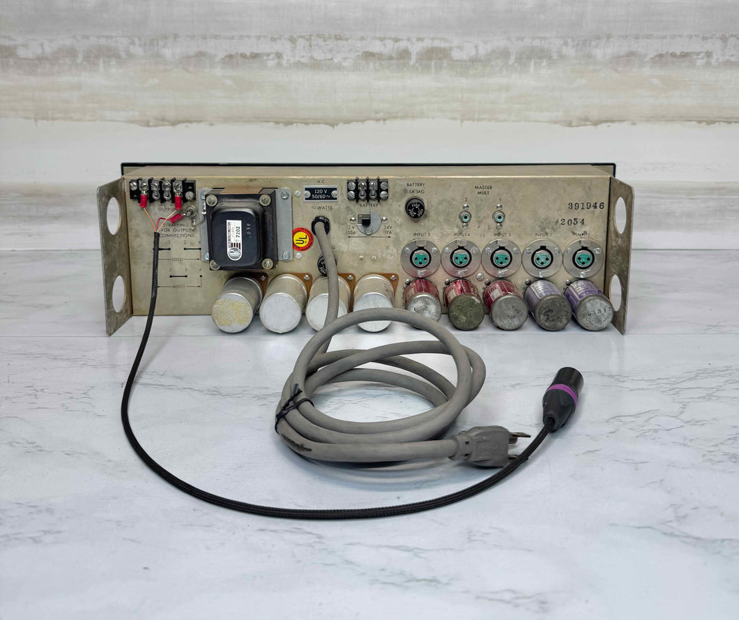 Altec 1592A 5-channel mixer. Has 2 x 1588B (mic) and 3 x 15095A (line) transformers, and XLR connections on the rear panel.